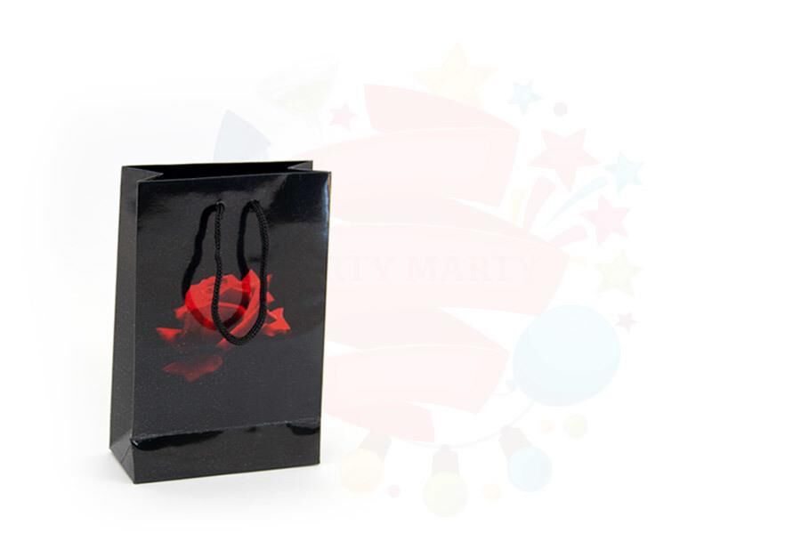 ÇANTA KARTON SELOFANLI 17*26 SİYAH GÜLLÜ 25’Lİ