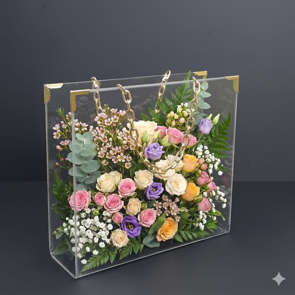 Şeffaf pleksi malzemeden imal edilmiştir.Boyu : 28cm x 30cm x 10cm
