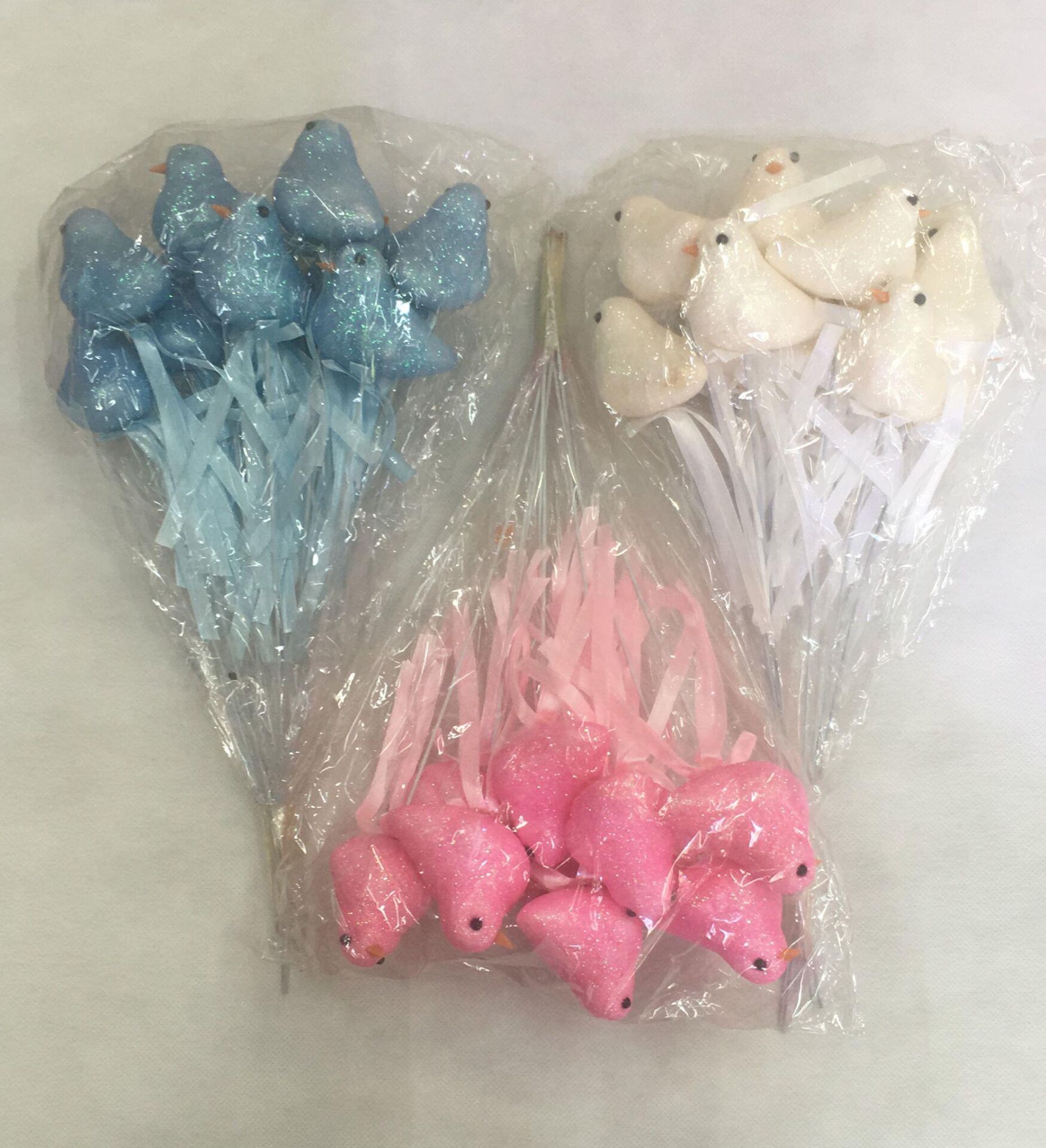 ÇUBUKLU STRAFOR KUŞ 10 LU MAVİ-PEMBE-BEYAZ