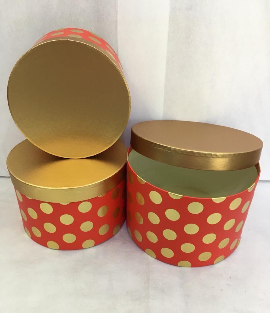 KUTU SİLİNDİR 3 LÜ ALTIN KAPAKLI PUANLI KIRMIZI