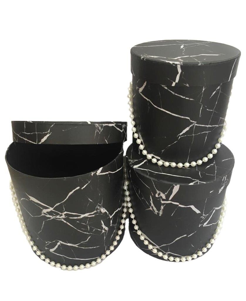 KUTU SİLİNDİR BONCUKLU 3 LÜ SET SİYAH MERMER