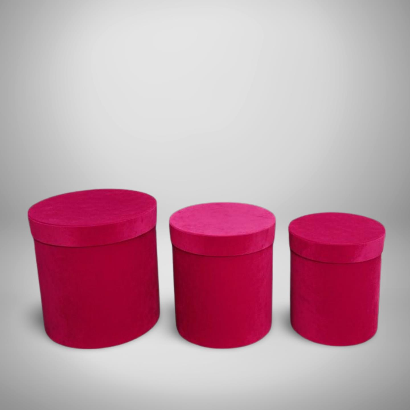 KUTU SİLİNDİR KADİFE KAPLI FUŞYA 3 LÜ SET