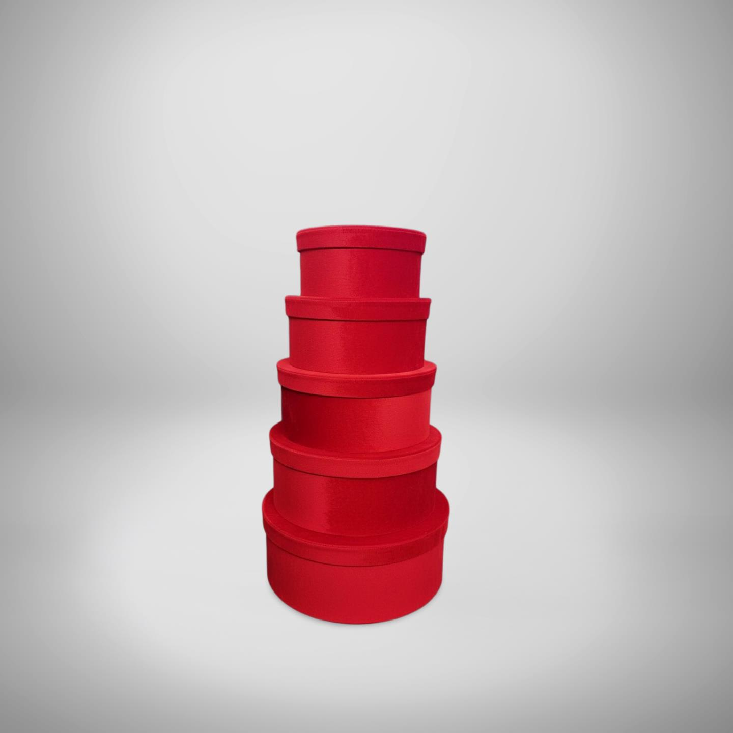 KUTU SİLİNDİR KADİFE KAPLI KIRMIZI 5 Lİ SET