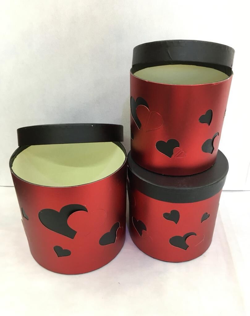 KUTU SİLİNDİR KALPLİ 3 LÜ SET METALİK KIRMIZI